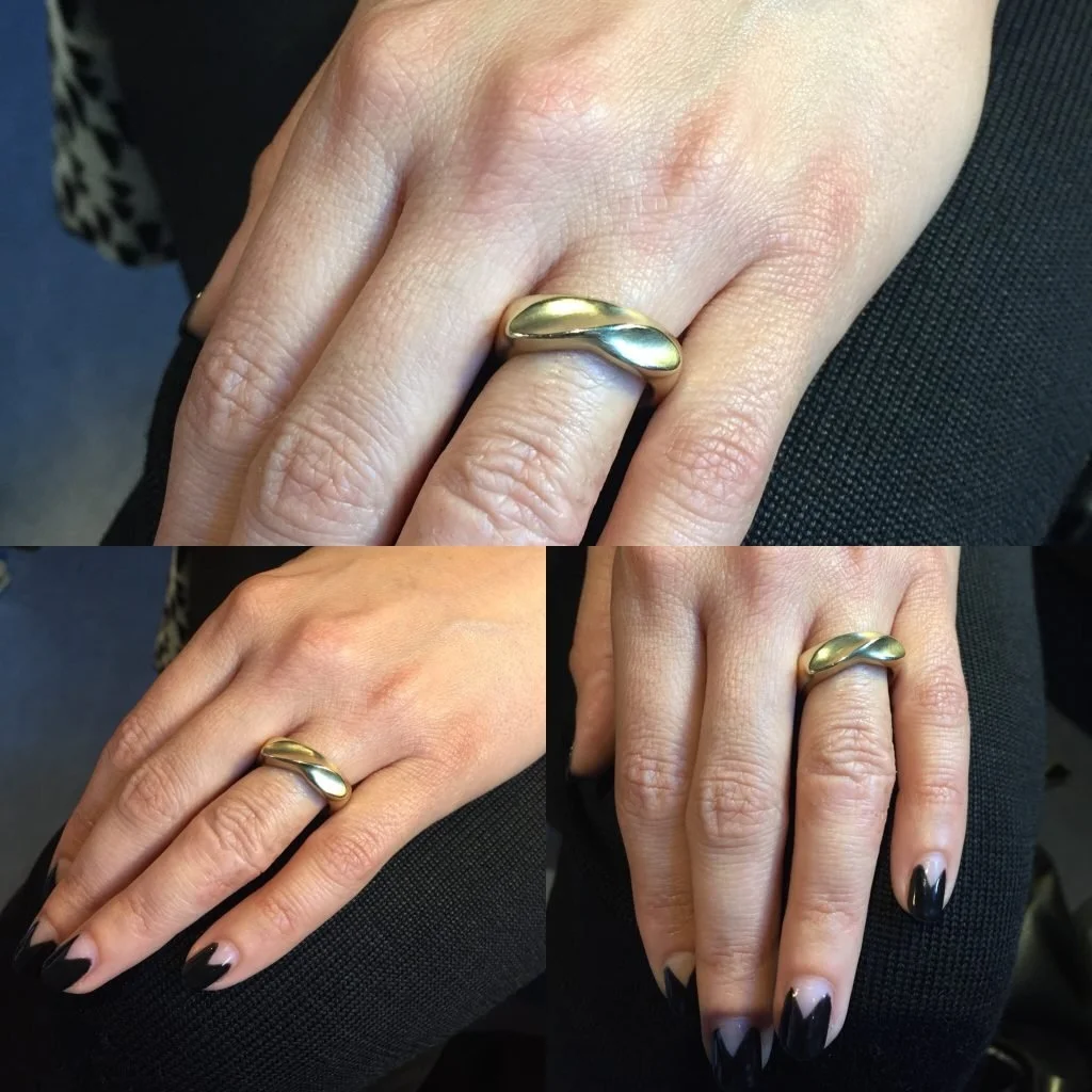 This beautiful ring came about from a client asking me to make a surprise engagement ring for his partner based on an unusual rubber ring she used to wear which she thought she had lost. He brought the ring to me and I carved a version of it capturing its character without being an identical copy much to his partner’s delight